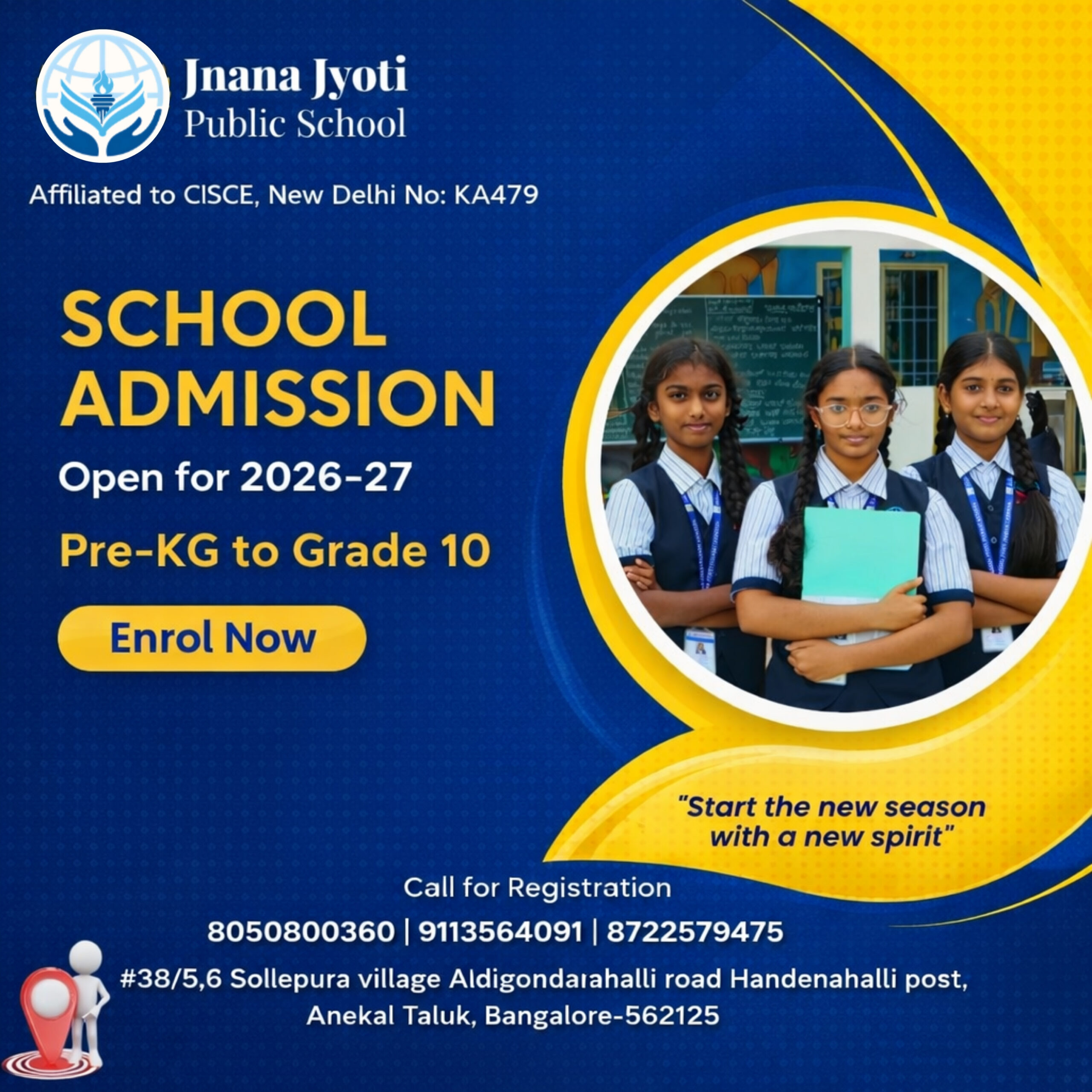 Jnana Jyoti Public School managed by Sree Yogi Nareyana Education Trust which was established in the year 2019 with a vision inspired by the words of Bhagavad Gita Chapter 4 “NA HI JNANENA SADRSAM PAVITRAM IHA VIDYATE TAT SVAYAM YOGA – SAMSIDDHAH KALENATMANI VINDATI”